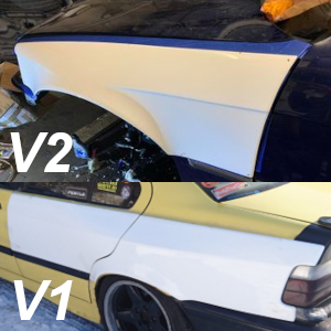 BMW E36 Sedan Overfenders Set: V2 Front +60mm / V1 Rear +45mm Without Door Handle