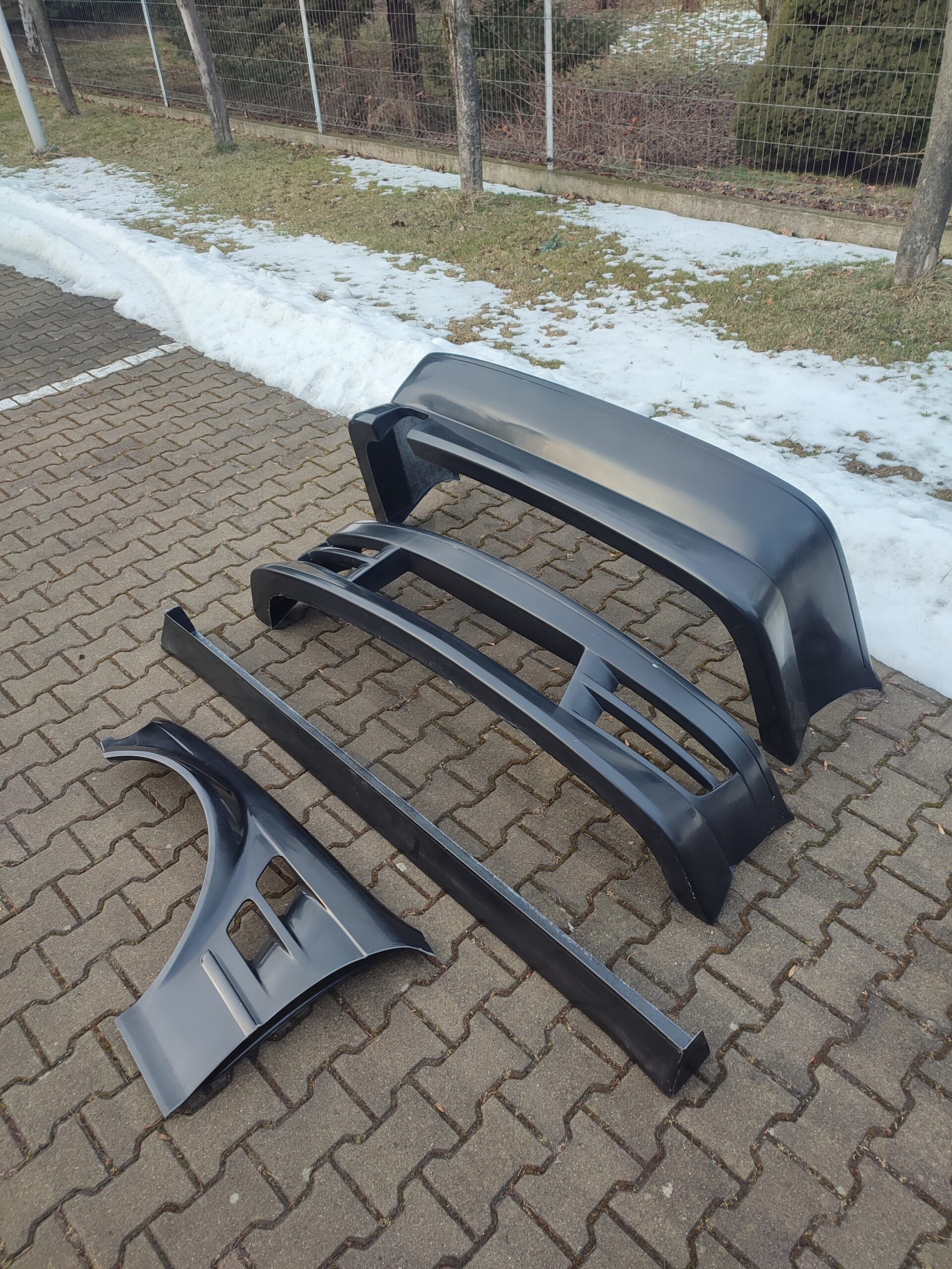This kit includes front and rear bumpers and sideskirts. You can choose option with no overfenders, Coupe or Sedan Front Overfenders.